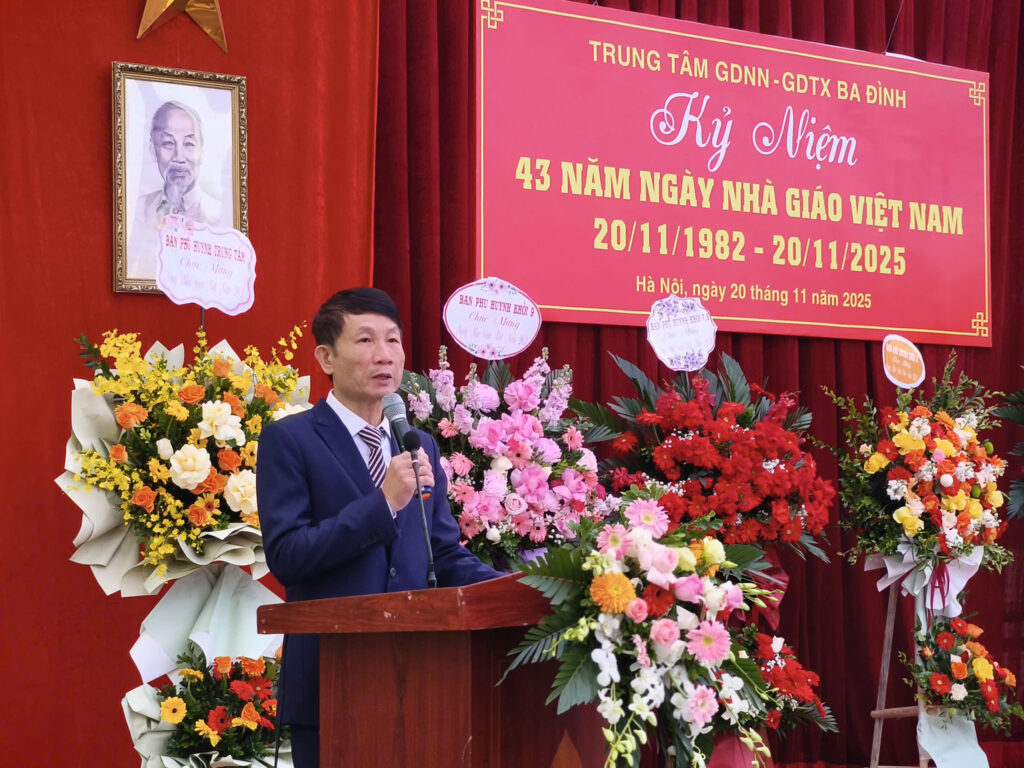Hòa chung với không khí hân hoan của cả nước hướng về ngày tri ân nghề giáo, sáng ngày 20/11, trung tâm GDNN-GDTX Ba Đình đã tổ chức Lễ kỷ niệm 43 năm Ngày Nhà giáo Việt Nam trong không gian trang trọng và ấm áp. Đây không chỉ là dịp để tôn vinh những người làm công tác giáo dục mà còn là thời điểm để thầy và trò cùng nhìn lại hành trình đã qua, tiếp tục nuôi dưỡng niềm đam mê, lòng yêu nghề và sự cố gắng không ngừng trong công cuộc trồng người.