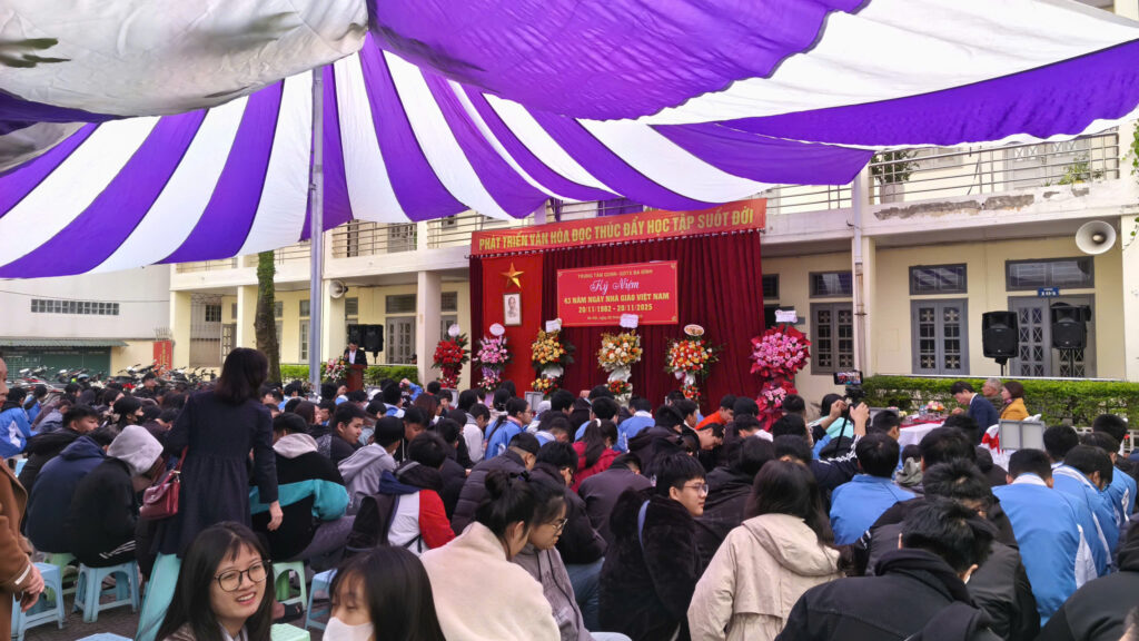 Buổi lễ có sự hiện diện của Ban Giám đốc trung tâm, toàn thể cán bộ – giáo viên – nhân viên cùng đông đảo học sinh các khối lớp. Từ sáng sớm, sân trường đã rộn ràng sắc màu với những bó hoa tươi thắm và tiếng cười nói vui vẻ của học trò. Không khí ấy càng làm nổi bật tinh thần “tôn sư trọng đạo” – một truyền thống văn hóa tốt đẹp được gìn giữ và lan tỏa suốt hơn bốn thập kỷ kể từ khi ngày 20/11 chính thức được chọn làm Ngày Nhà giáo Việt Nam