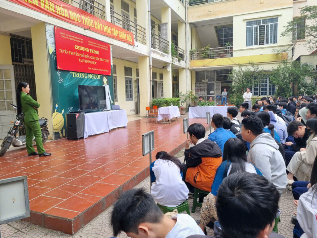 Bên cạnh đó, học sinh còn được tuyên truyền về Luật Phòng, chống ma túy, cách nhận diện các loại ma túy phổ biến hiện nay, những thủ đoạn lôi kéo, dụ dỗ của tội phạm ma túy cũng như tác hại nghiêm trọng của ma túy đối với sức khỏe, tinh thần và tương lai của mỗi cá nhân. Đặc biệt, các cán bộ công an đã nhấn mạnh việc nâng cao cảnh giác trước các hình thức lừa đảo qua mạng, tội phạm công nghệ cao, hiện tượng “bắt cóc online”, giúp học sinh trang bị kỹ năng tự bảo vệ bản thân trong môi trường số.