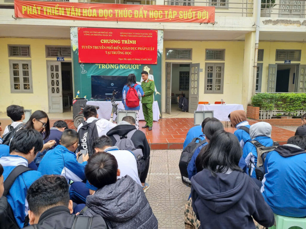 Thực hiện Công văn số 565/PC02-Đ4 ngày 25/11/2025 của Công an thành phố Hà Nội và kế hoạch phối hợp của Công an phường Ngọc Hà, trong tháng 12 năm 2025, Trung tâm GDNN–GDTX Ba Đình đã tổ chức chương trình tuyên truyền, phổ biến, giáo dục pháp luật cho học sinh nhằm nâng cao nhận thức, ý thức chấp hành pháp luật, góp phần xây dựng môi trường giáo dục an toàn, lành mạnh.
